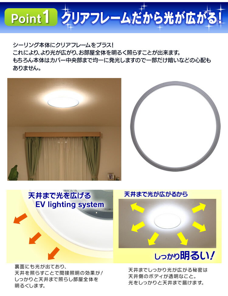 ■適応畳数〜14畳用■定格電圧100V(50/60Hz)■定格消費電力約50W■待機電力0.5W■光色電球色〜昼光色相当■器具光束5800lm■演色性80Ra■設計寿命40000時間■調光/調色/常夜灯10/11/2段階■タイマーおやすみタイマ・るすばん機能・点灯タイマー■セット内容LEDシーリングライト本体、取り付け用スペーサー(角)、取り付け用スペーサー(丸)、リモコン、リモコンホルダー、単3形乾電池×2本、ネジ×2本、取扱説明書■材質ポリプロピレン、鋼板、難燃ポリカ■商品サイズ(cm)直径約56×高さ約9.3■重量約1.8kgモダンなインテリアにも合うクリアフレームデザインのLEDシーリングライトです。
