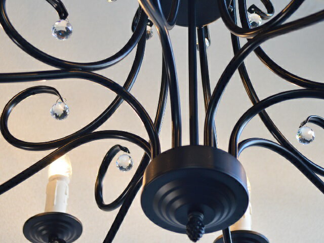 Lサイズでは大きすぎるという方に!!更にMサイズ6灯タイプも!天井も飾ってほしい! シャンデリア マッドブラック アイアン シャンデリア 直径80センチの迫力! クリスタルガラスのボール(付属品)を付けると昼もサンキャッチャーとして空間が輝きます。