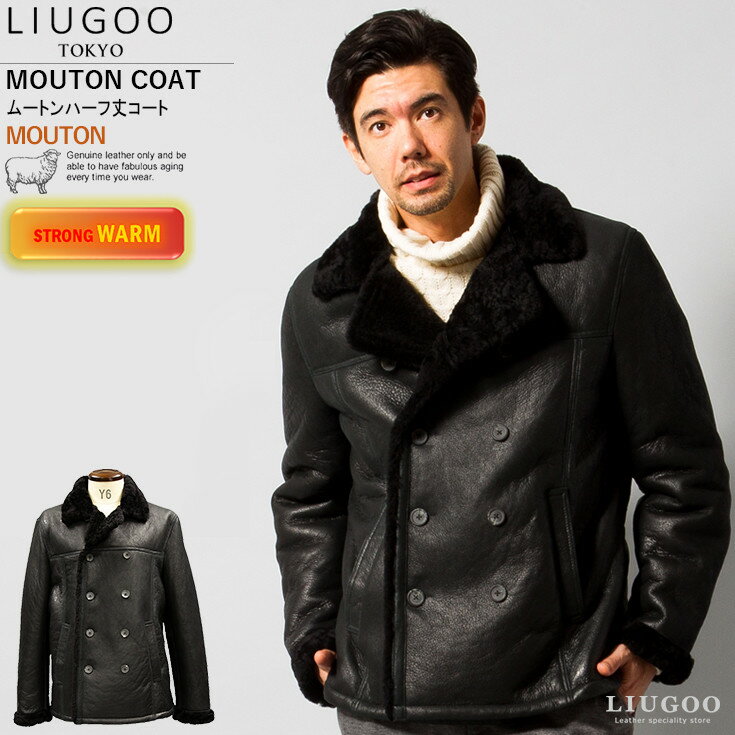 LIUGOO 本革 ムートンコート メンズ リューグー COT03A リアルムートン レザージャケット 革ジャン 本革ジャケット 羊毛革 本革ムートンジャケット ムートンコート ムートンベスト 毛皮 皮ジャン ラグジュアリーモデル 防寒性抜群! 黒