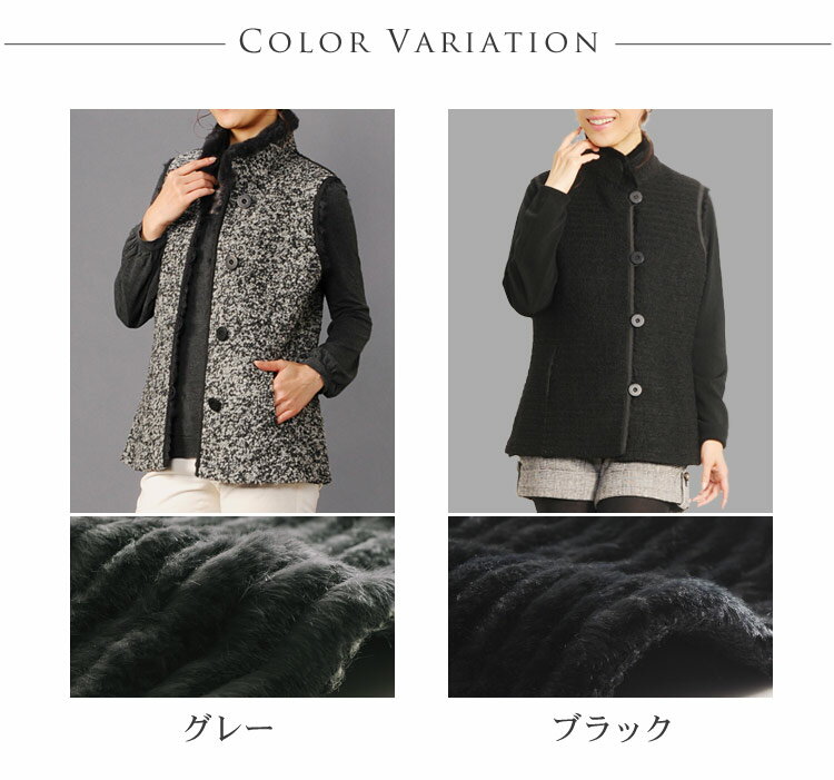 ギフト:ラッピング無料 品番:01000593r お問い合わせの際は、コチラの品番をお伝えください 商品名:ファー ベスト リバーシブル ラビット & ブークレ スタンドカラー / レディース ※使用上の注意毛皮は大変、デリケートな素材になりますので、 クリーニングを必要とされる場合はご家庭で実施せず、 必ず信頼のおけるクリーニング店にご相談ください。