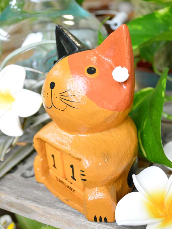 仕様 【サイズ】■全体サイズ:幅8cm×奥行6.5cm×高さ11.5cm【素材】■材質:天然木 コメント ■バリ島からネコちゃんのカレンダーが入荷しました☆